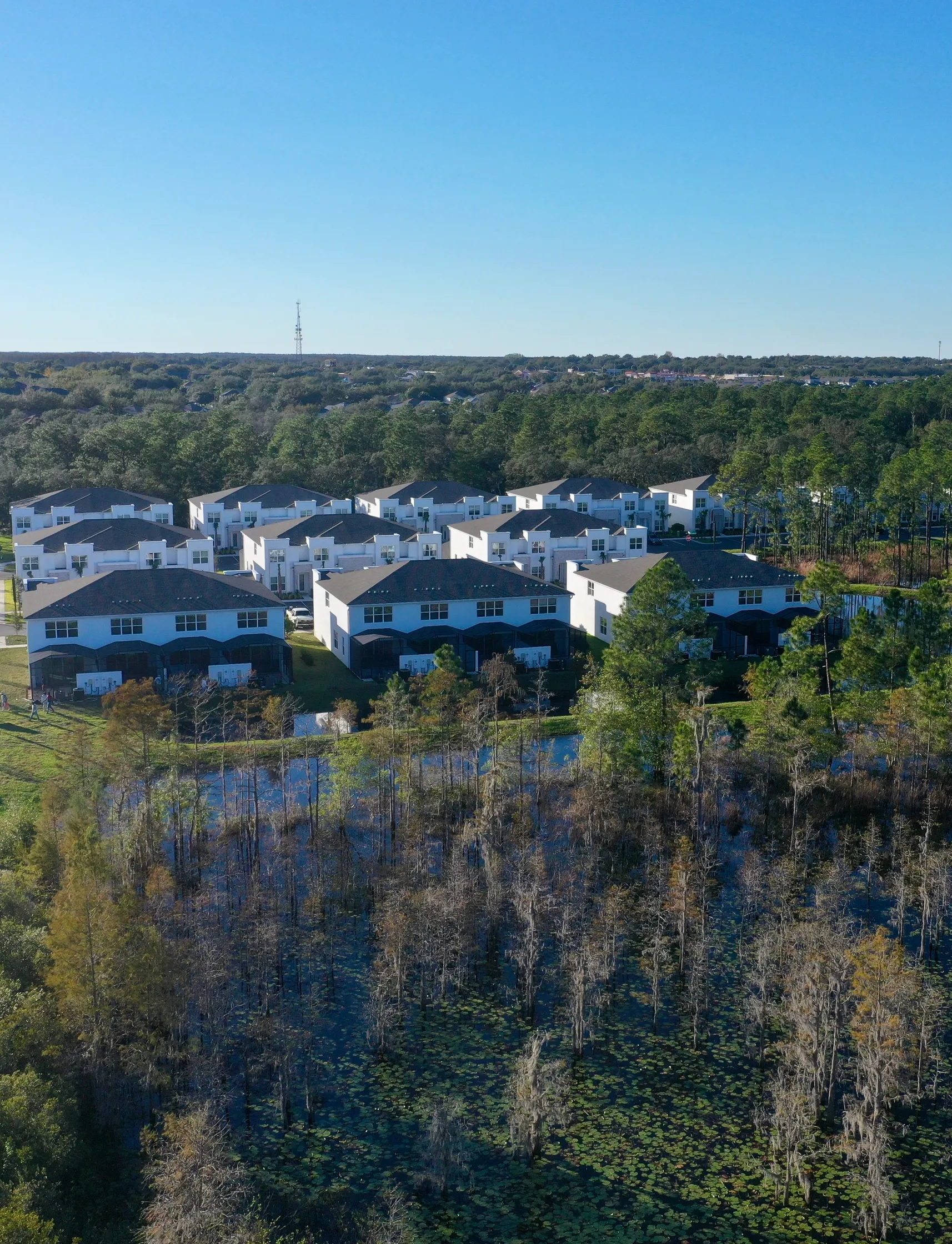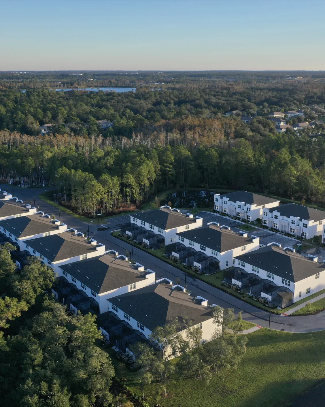 Nestled across more than 25 acres of peaceful landscape, Tranquility is a thoughtfully designed collection of 112 eco-friendly resort townhomes that redefine modern living in Central Florida. Each residence has been carefully placed to take full advantage of the natural surroundings, offering homeowners the perfect balance between connection and calm — a true retreat from the everyday, without ever being far from the excitement of Orlando.